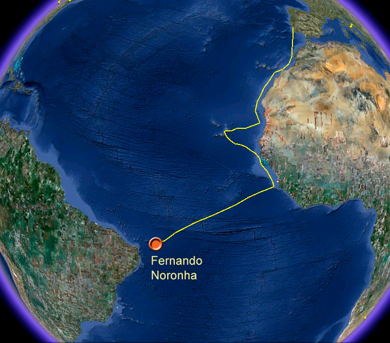 La isla a la que se hace alusión es sin duda la mayor del archipiélago de Fernando de Noronha, localizado a unos 350 km de la costa brasileña y a poco menos de cuatro grados de latitud sur. El archipiélago y la isla más grande llevan el nombre de Fernão de Loronha, comerciante de la época que probablemente haya sido el patrocinador de la expedición. Loronha era el principal impulsor de la explotación del palo brasil (Caesalpinia echinata), un árbol del que se extraía una valiosa tintura roja y que dio posteriormente nombre al país.